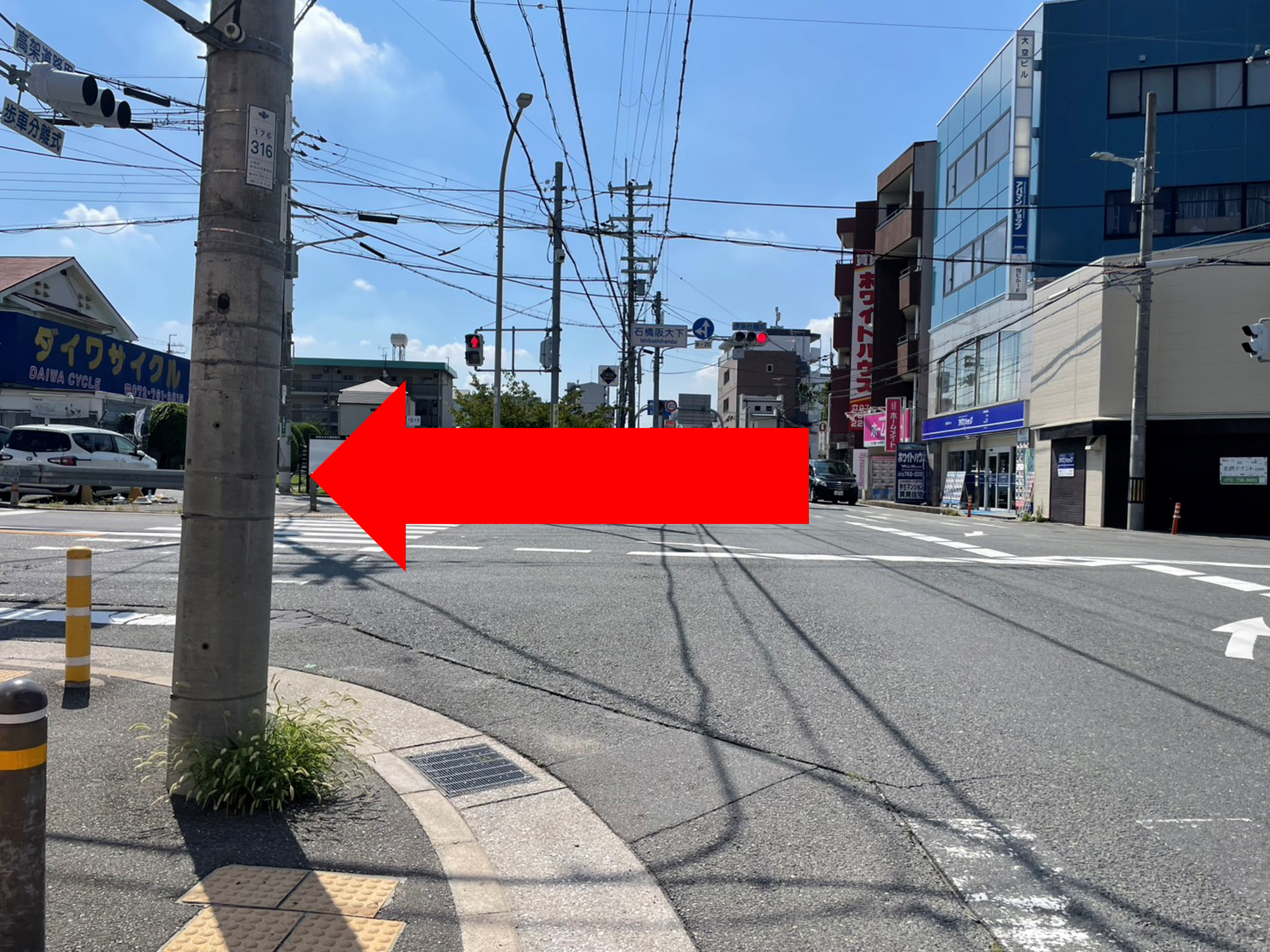 大きい交差点を渡ってから、ダイワサイクルのある角を左に